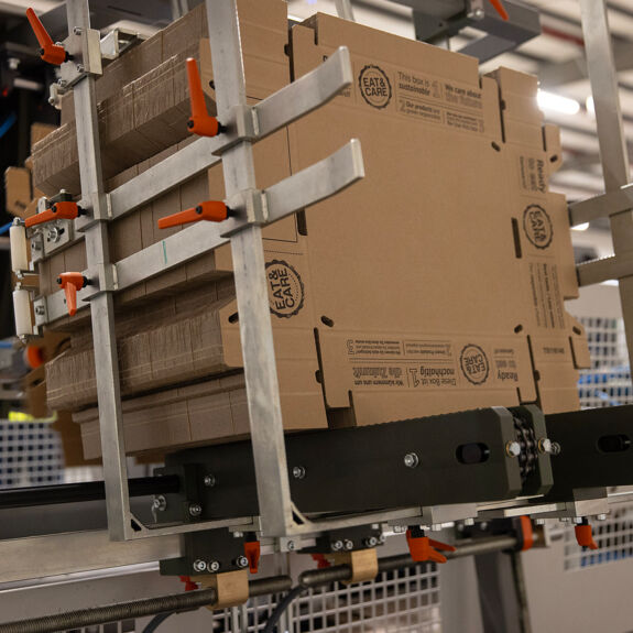 “Another benefit is that solid board packaging is very sustainable”, continues André Lamers. The tray is fabricated from recycled material and can be recycled after use. “At the end of its life, every part of the packaging is 100% naturally compostable”, explains Johan De Neef, Managing Director of Smart Packaging Solutions. “The carbon footprint from logistics doesn’t get much more sustainable than this. The packaging is manufactured and erected in our plant in Meer and then it is delivered to Special Fruit, where the ripened mangoes and avocadoes are packaged.”